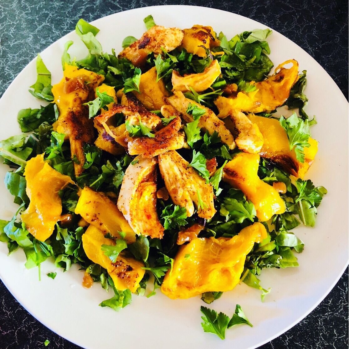This is quick to make and tastes great. I make my own dressing and this time, I used apple cider vinegar, chutney and olive oil.