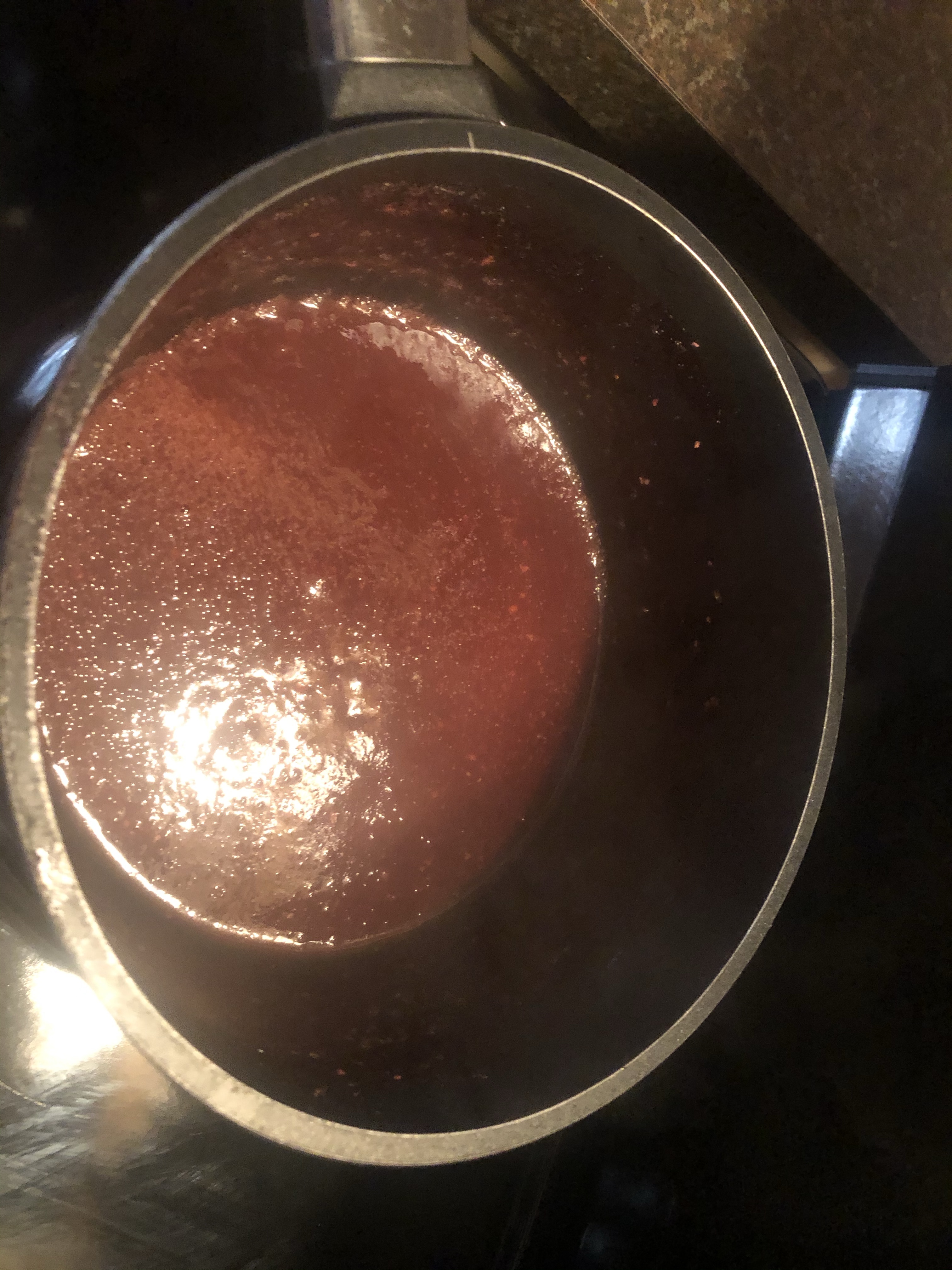 Blend and then bring back to the pot. Bring to a boil until the syrup starts reducing.