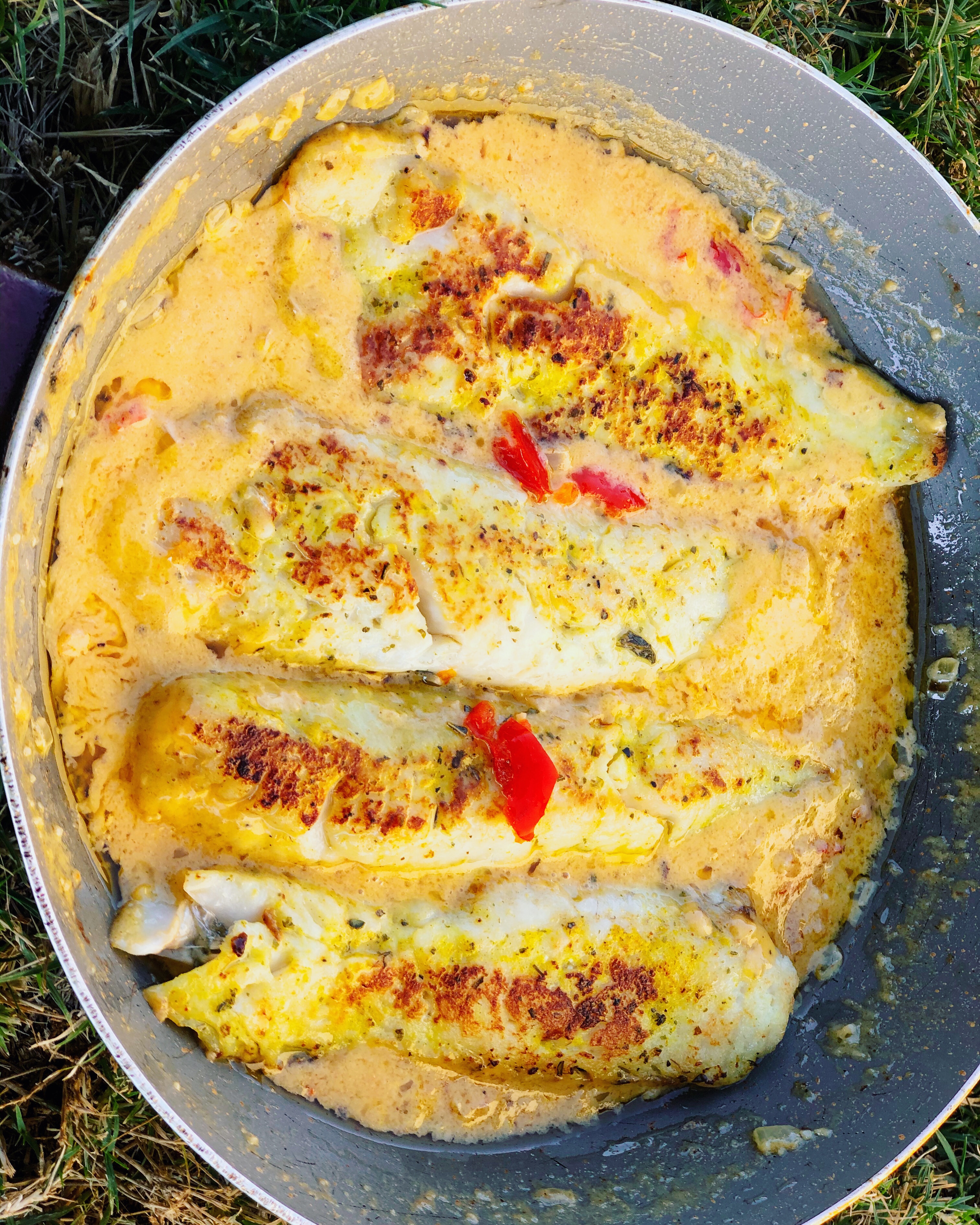 Hake in a Creamy butter, lemon, garlic & peppadew sauce.