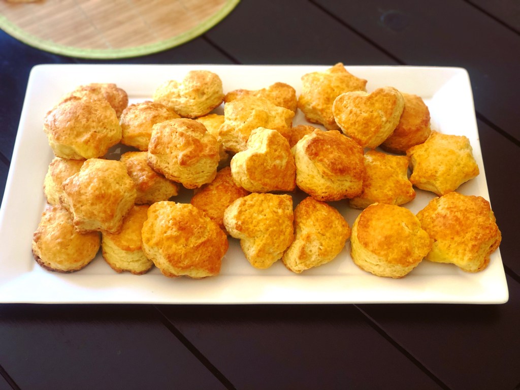 6. Cut out your desired shapes and place onto a greased baking tray.