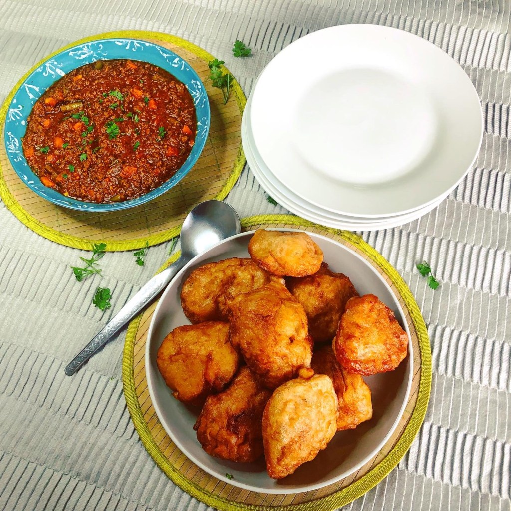 Vetkoek, also called Magwenya or machuchu is a yeast dough that’s simply deep fried till golden brown.