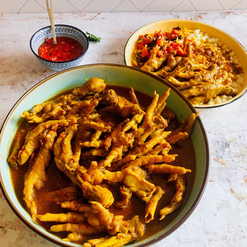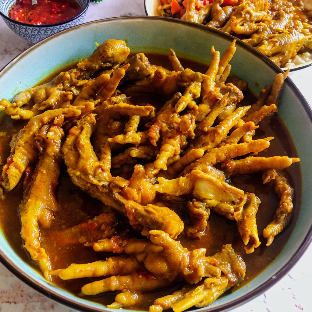 Chicken feet are also very gelatinous, so you can definitely expect your fingers to be sticky from eating them. You can’t eat them with a forks and a knife, the beauty is eating them with your hands and sucking the juice out of the bones. I chew everything including the bones and leave them very crumbly and out of their juiciness.
