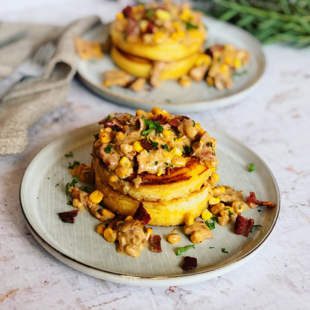 If you are using an egg ring to shape them, spray your egg ring with spray & cook first. You still put butter in the pan before cooking. Put your egg ring in pan and pour the half ladle batter in. Once the bubbles start, you can remove the egg ring and flip the pancake, cook it until you serve.