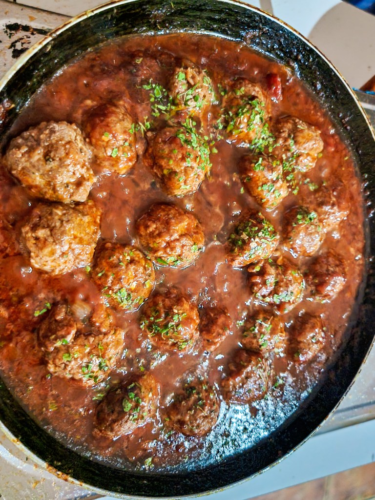 - Add the meatballs and remaining 1 tablespoon of parsley and cook for a further 15 minutes or until the sauce has thickened.