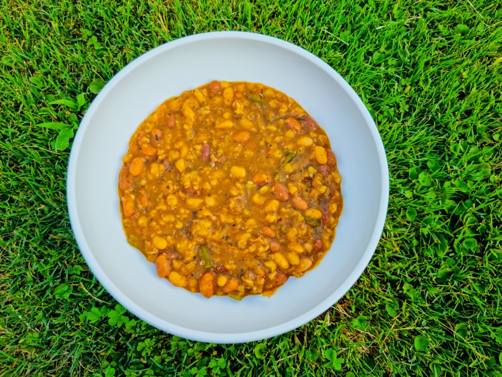 It has been a rainy few days and I have been craving samp with beef bones but I am too lazy to go looking for the bones so I decided to be a little bit creative and put together a new samp and beans recipe. The two kinds of beans used here are from our farm.
