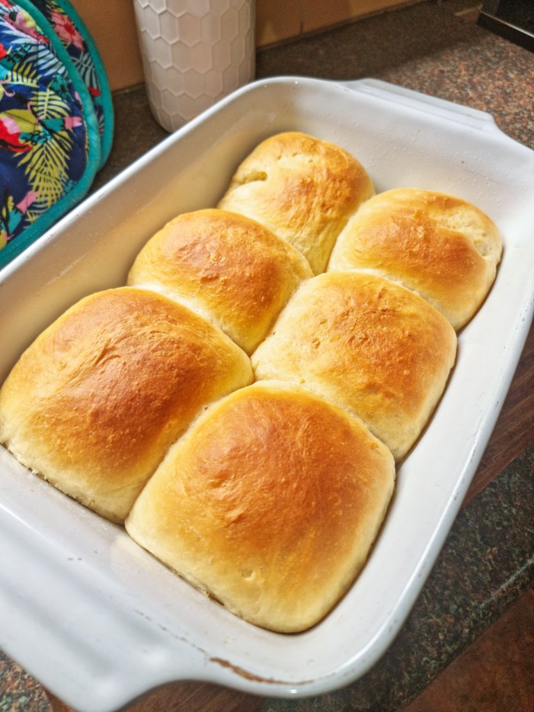 I made these big sized dinner rolls for my people. We used them to make burgers. I did not have the patience to make them smaller and bake 2 pans.