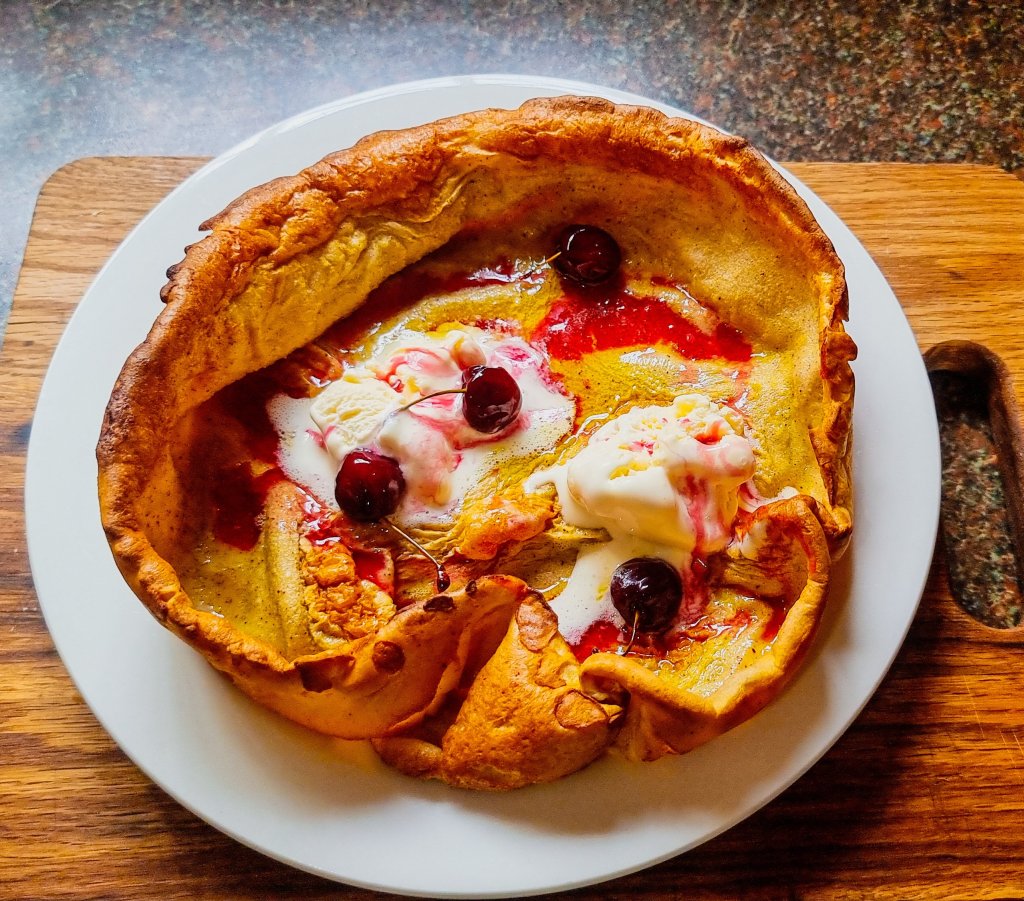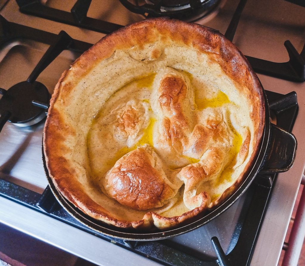 7. Bake for 10 minutes or until the pancake is a lovely golden brown and crispy around the edges.